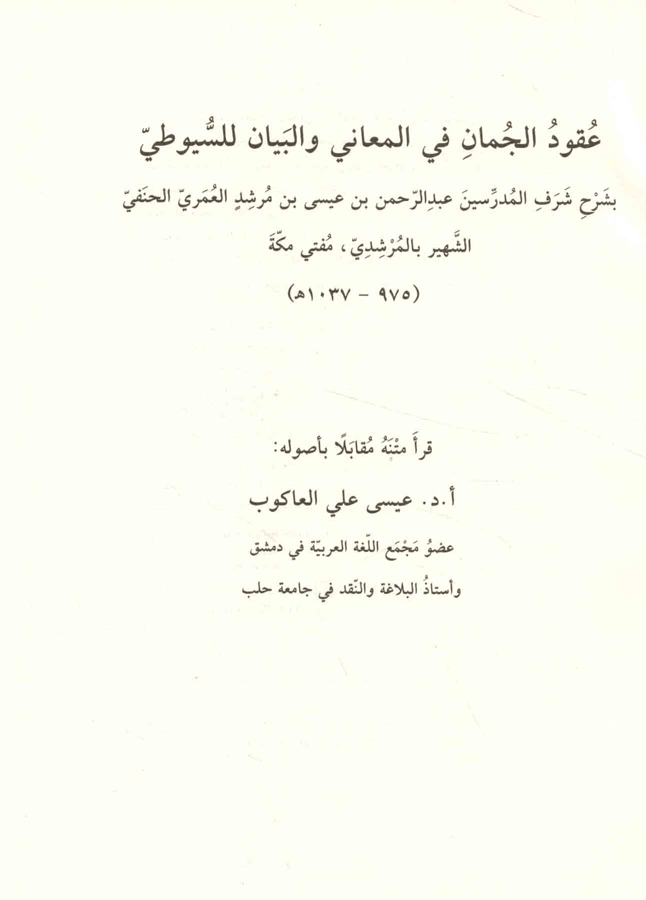 - Suyuti, 1445-1505. Uqud al-juman fi ilm al-maani wa-al-bayan