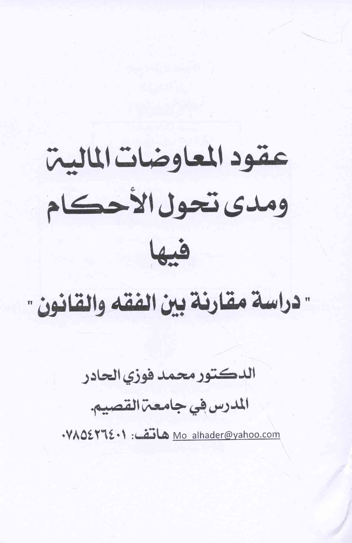 | Naẓarīyat al-‘aqd fī al-fiqh al-Islāmī wa-taṭbīqātuhā al-mu‘āṣirah |