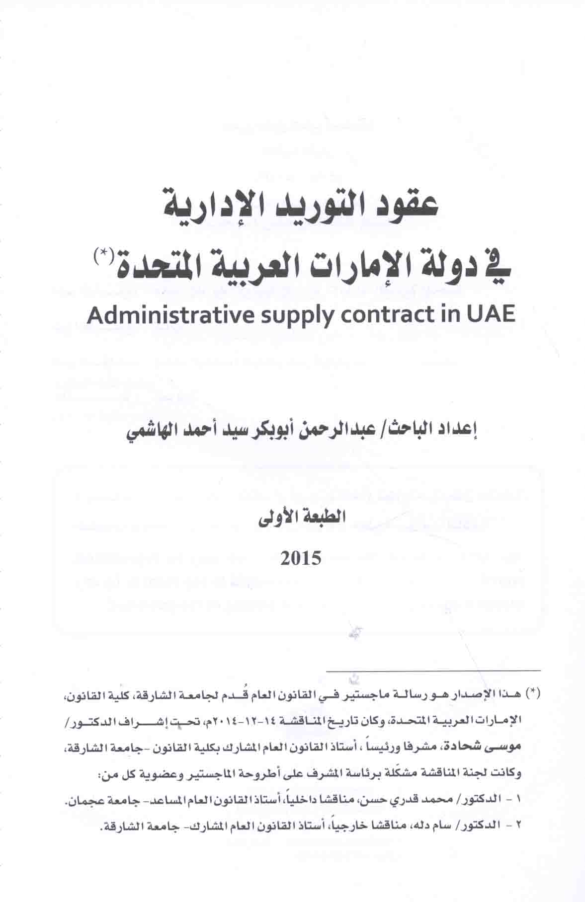 | Mabādi’ al-qānūn al-idārī wa-taṭbīqātuhu fī Dawlat al-Imārāt al-‘Arabīyah al-Muttaḥidah |