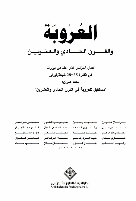 | Mas’alat al-huwīyah, al-‘urūbah wa-al-Islām -- wa-al-gharb |
