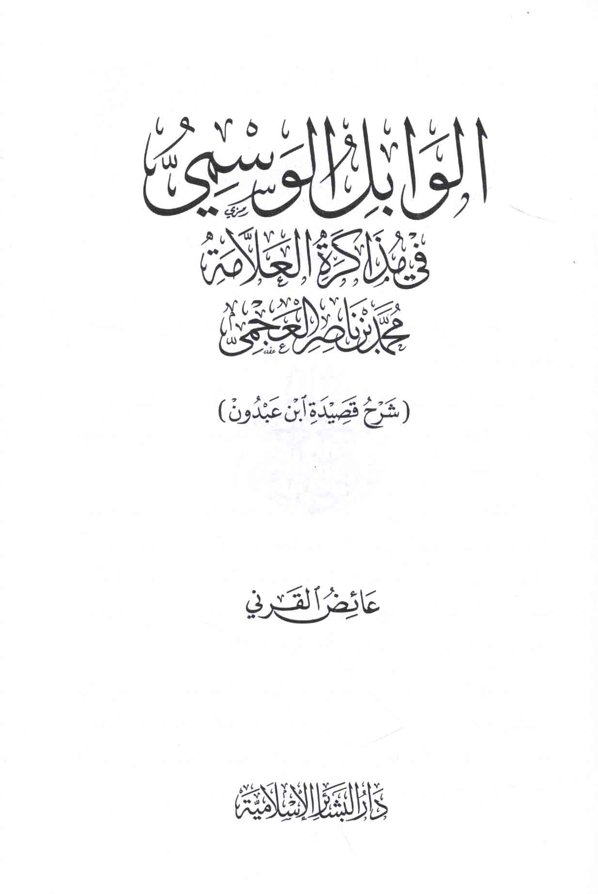 الـوابـل الـوسـمـي فـي مـذاكـرة الـعـلّامـة مـحـمـد بن نـاصـر الـعـجـمـي، شـرح قـصـيـدة ابن عـبـدون