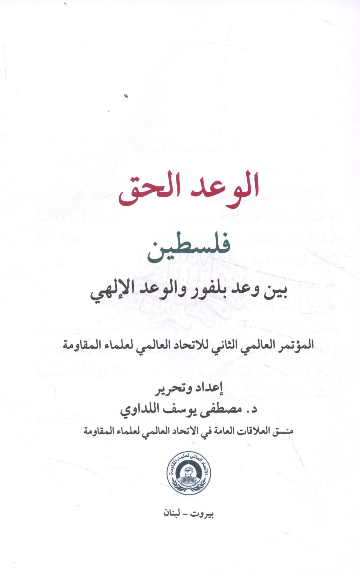 Published/Created: Bayrūt : al-Ittiḥād al-‘Ālamī li-‘Ulamā’ al-Muqāwamah, [2019].