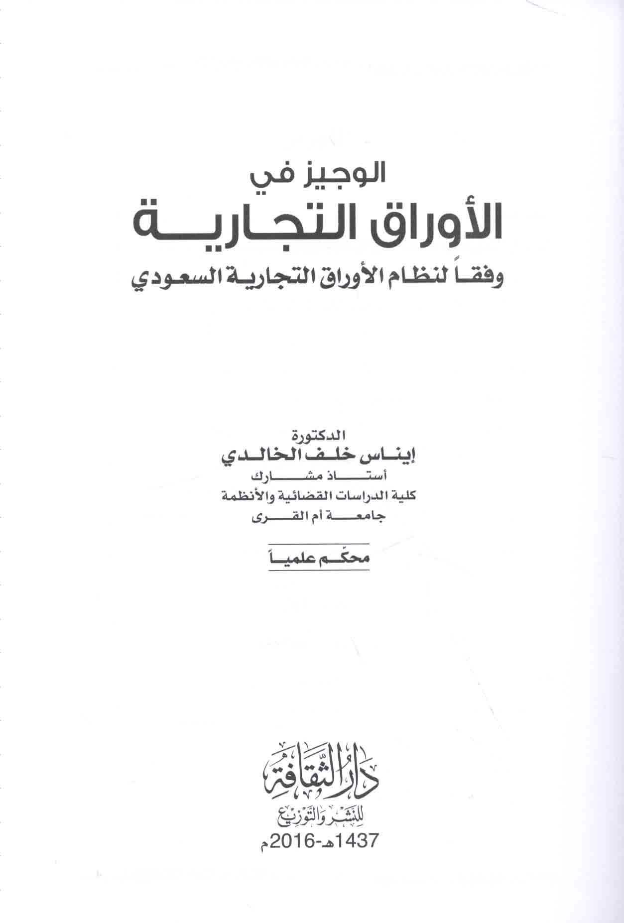 | al-Awrāq al-tijārīyah wa-al-‘amalīyāt al-maṣrifīyah fī al-niẓām al-tijārī al-Sa‘ūdī |