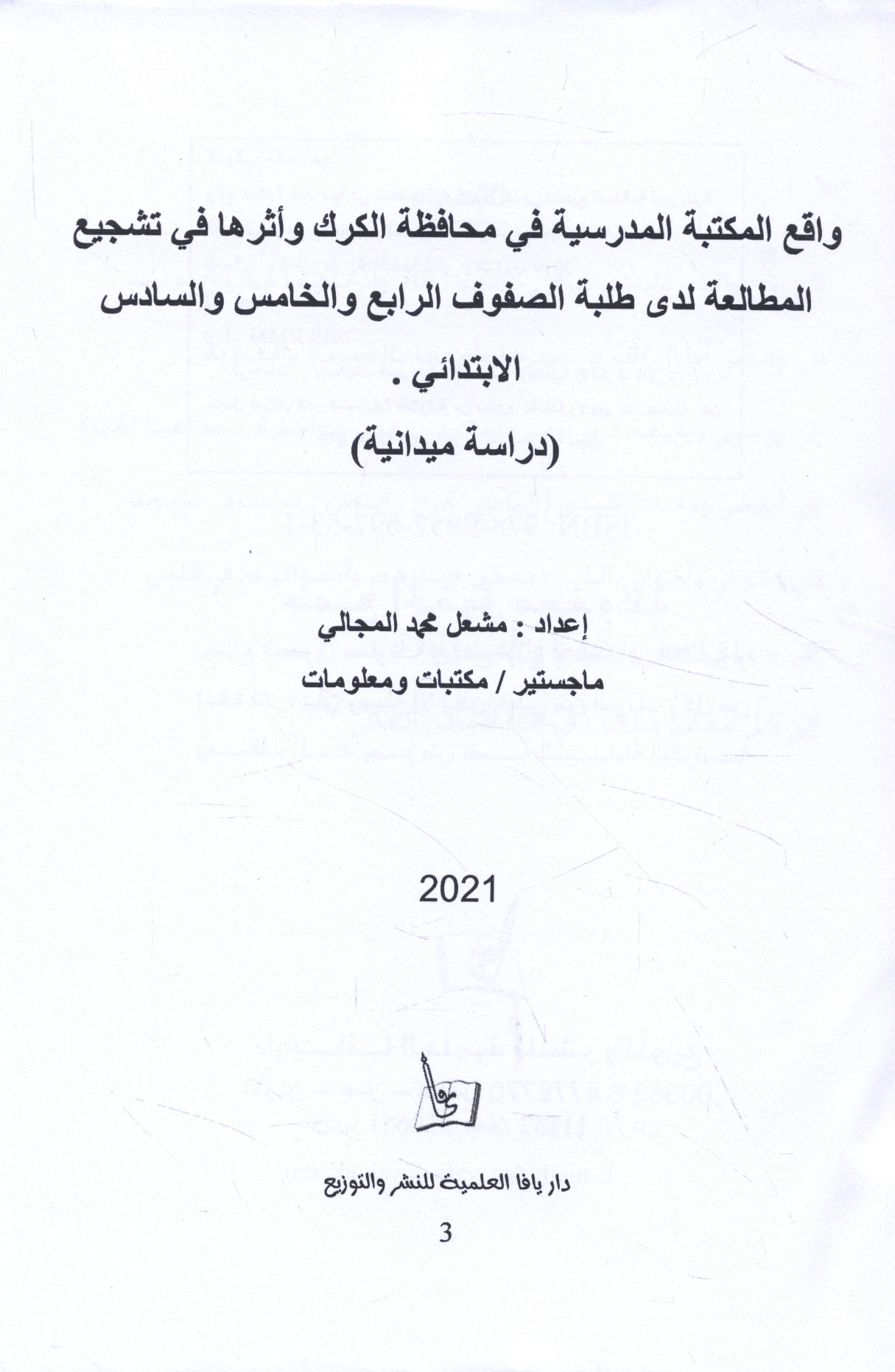 Published/Created: ‘Ammān : Dār Yāfā al-‘Ilmīyah lil-Nashr wa-al-Tawzī‘, 2021.