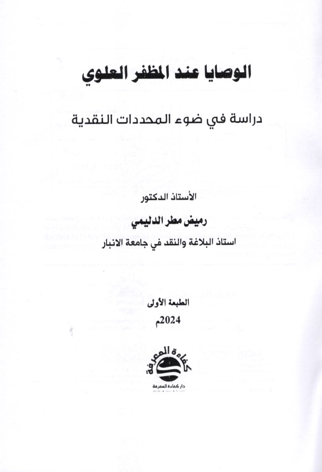الـوصـايـا عـنـد الـمـظـفـر الـعـلـوي، دراسـة فـي ضـوء الـمـحـددات الـنـقـديـة