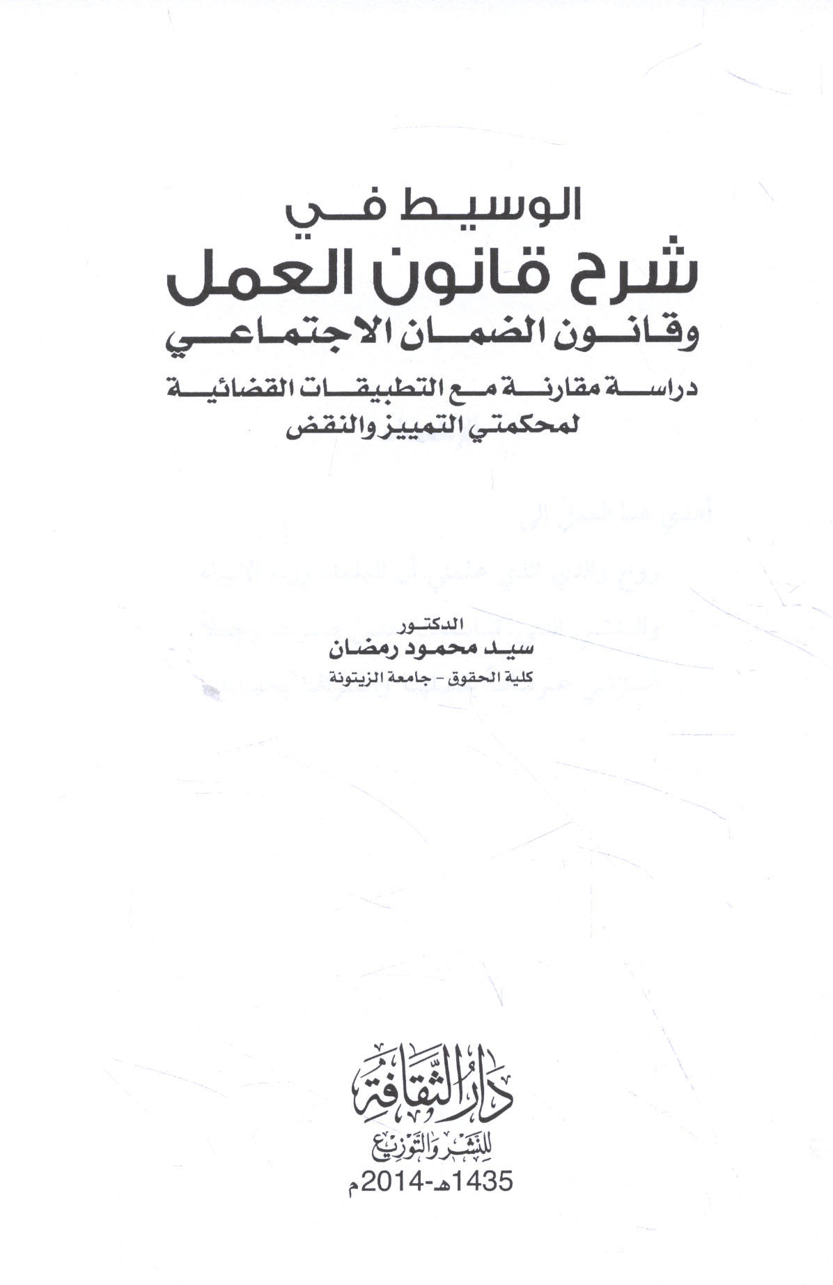 | Sharḥ aḥkām qānūn al-‘amal wifqan li-ākhir al-ta‘dīlāt wa-ijtihādāt maḥkamat al-tamyīz |