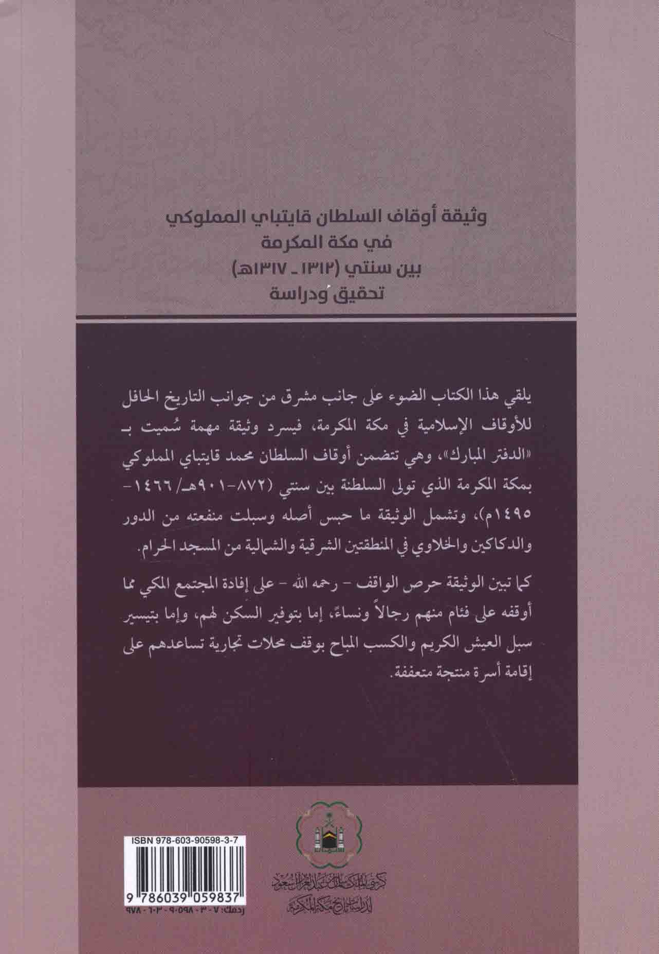 Published/Created: al-Riyāḍ : Kursī al-Malik Salmān ibn ‘Abd al-‘Azīz Āl Sa‘ūd li-Dirāsāt Tārīkh Makkah al-Mukarramah, 2015.