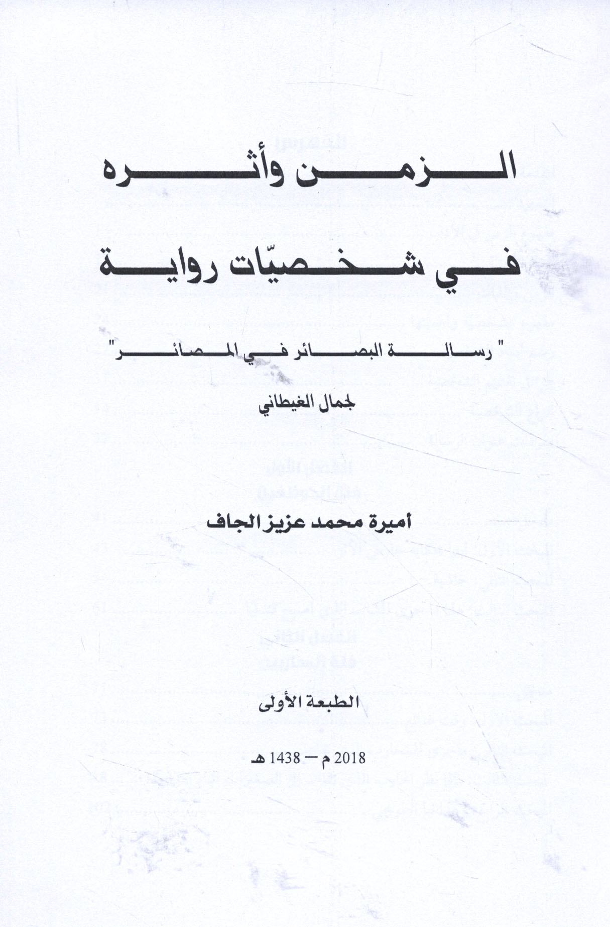 Zaman wa-atharuhu fī shakhṣīyāt riwāyat "Risālat al-baṣā’ir fī al-maṣā’ir" li-Jamāl al-Ghīṭānī